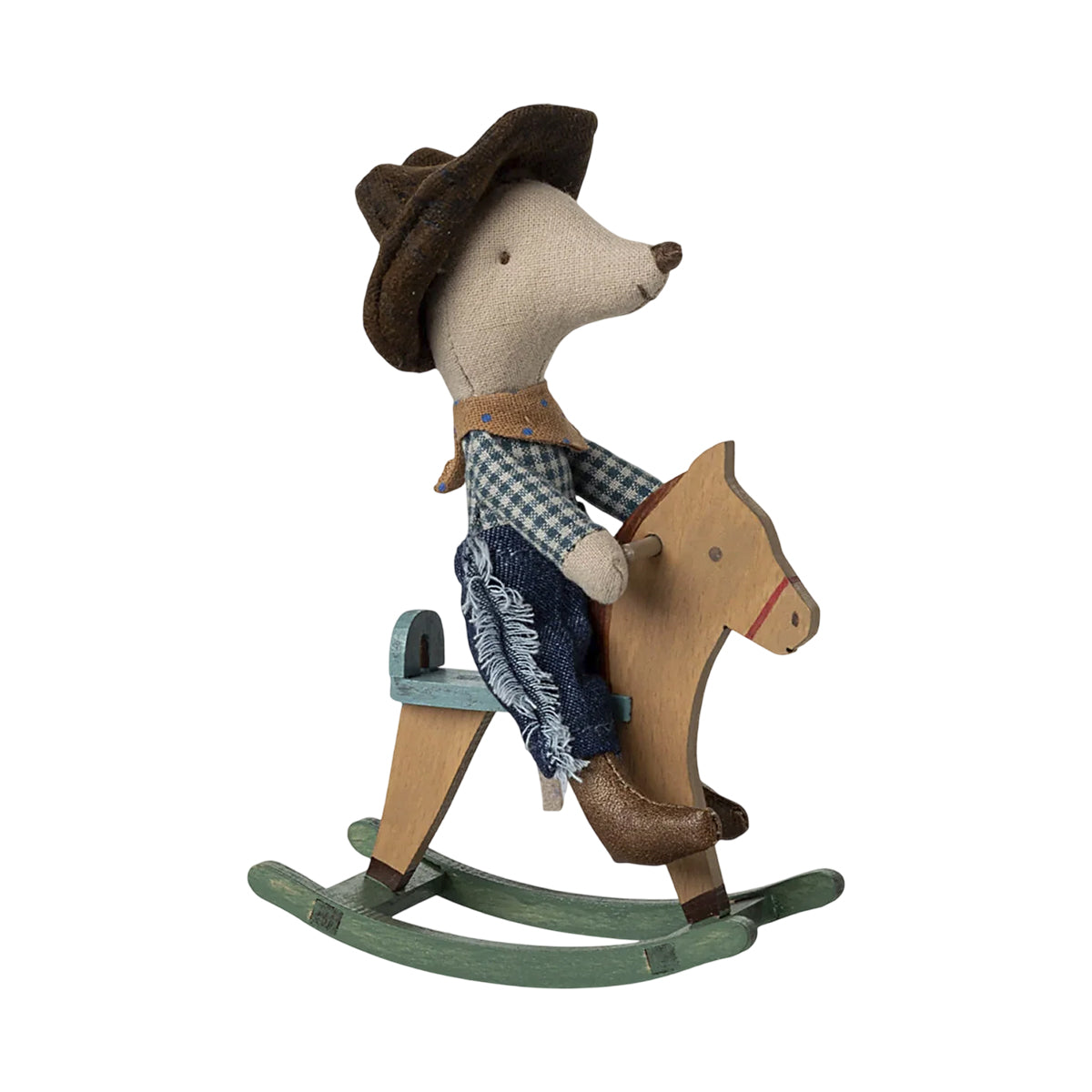 Maileg Cowboy Mouse on Rocking Horse - Little Brother