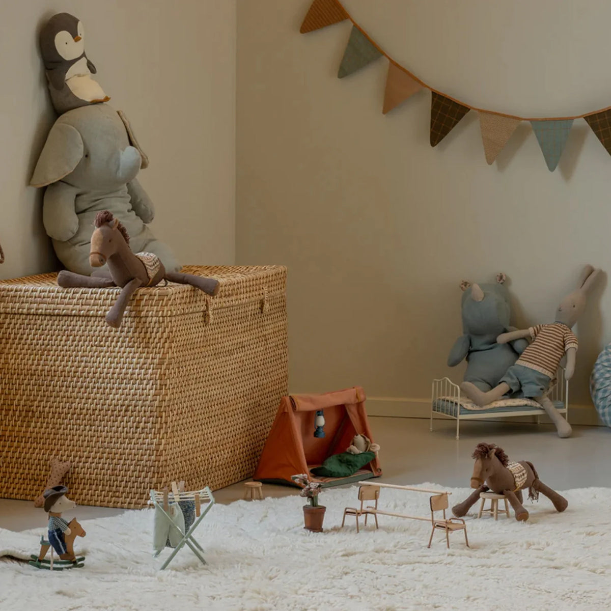 Your little ones will love their new best friend Cowboy Mouse on Rocking Horse, a little brother sized mouse by Maileg! The cloverly designed magnetic hands for easy accessory holding.